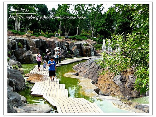 迷霧噴泉,環繞著人工做成的瀑布和噴泉,